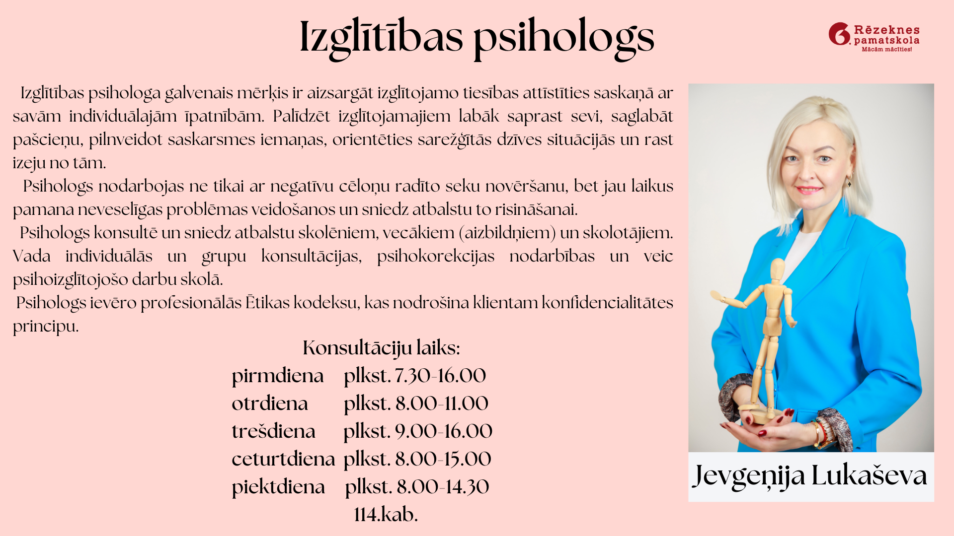 ATBALSTA KOMANDAS SPECIĀLISTU DARBA LAIKS Speciālais pedagogsSociālais pedagogsPsihologsKarjeras konsultantsLogopēds
